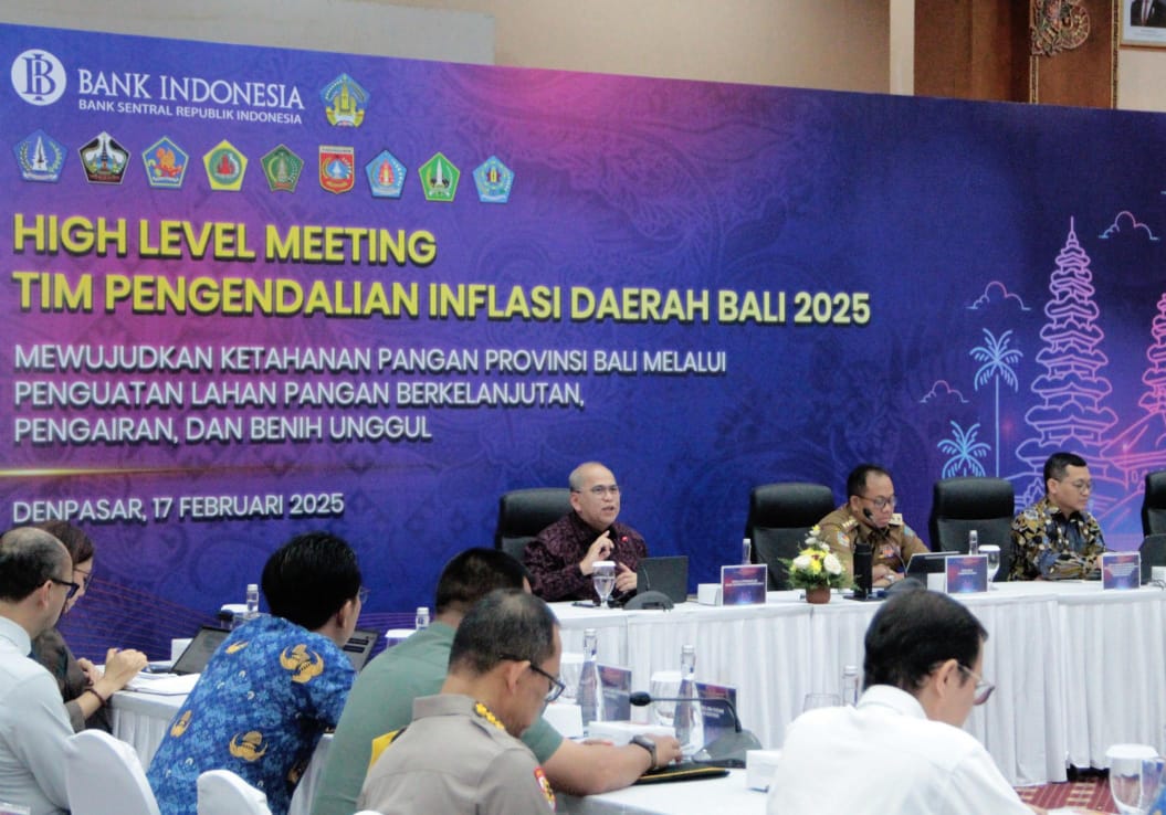 Merespon hal tersebut, Pemerintah Daerah dan Bank Indonesia dalam wadah Tim Pengendalian Inflasi Daerah (TPID) Bali menyelenggarakan High Level Meeting (HLM) yang mengangkat tema “Mewujudkan Ketahanan Pangan Provinsi Bali Melalui Penguatan Lahan Pangan Berkelanjutan, Pengairan, dan Benih Unggul” pada hari Senin (17/02).
