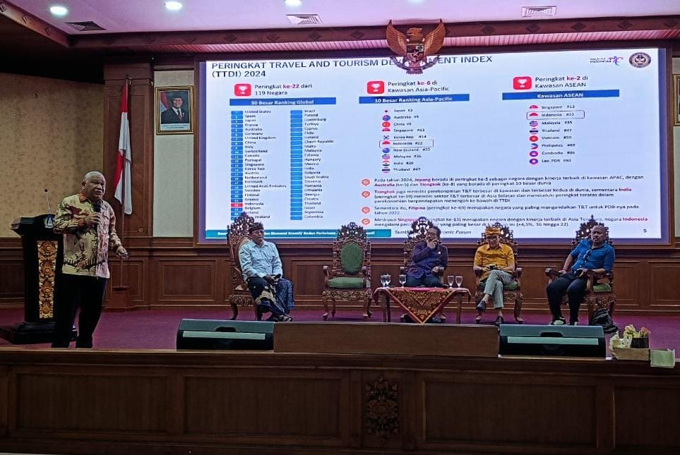 Dalam paparannya, Deputi Bidang Produk Pariwisata dan Penyelenggara Kegiatan Kementerian Pariwisata RI Drs. Vinsensius Jemadu, MBA., menyampaikan, bahwa Bali sangat luar biasa dilihat dari perspektif pariwisata dalam jumlah kunjungan wisatawan mancanegara (wisman), karena Bali sebagai satu-satunya Provinsi dari 38 Provinsi di Indonesia yang memberikan kontribusi pemasukan dari sektor pariwisata.