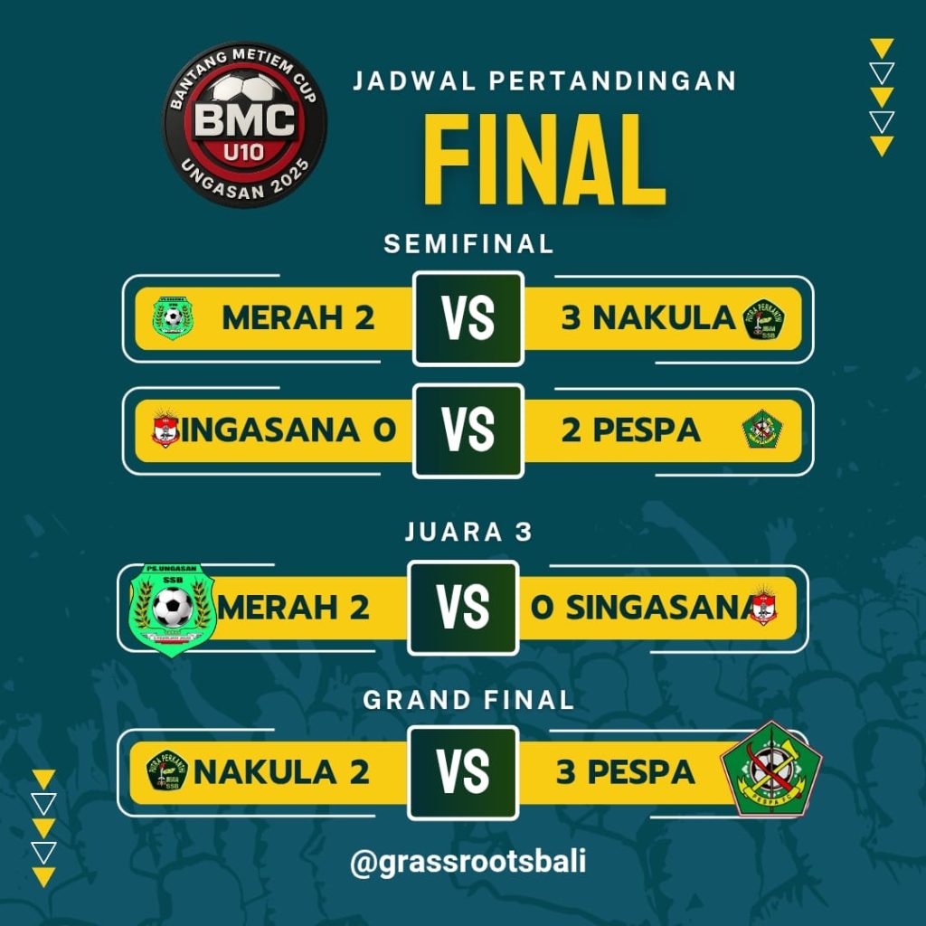 Dengan atmosfer kompetisi yang ketat, BMC Ungasan 2025, panitia berharap para pemain muda tidak hanya berkompetisi secara sportif, tetapi juga memperoleh pengalaman berharga dalam mengembangkan bakat dan mental bertanding sejak usia dini.***