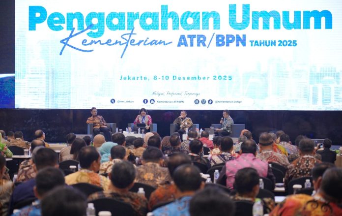 Jakarta, Porosinformatif| Sekretaris Jenderal (Sekjen) Kementerian Agraria dan Tata Ruang/Badan Pertanahan Nasional (ATR/BPN), Dalu Agung Darmawan, memberikan pengarahan kepada jajaran pusat dan daerah yang hadir dalam Rapat Kerja Nasional (Rakernas) Kementerian ATR/BPN, Senin (08/12/2025). Dua hal utama yang ia tekankan adalah pemahaman dan implementasi Rencana Strategis (Renstra), serta memanfaatkan momentum di penghujung tahun 2025 ini untuk melakukan evaluasi dan perencanaan kegiatan di 2026 mendatang. Hal ini diimbau kepada seluruh peserta, mulai dari jajaran Kantor Wilayah (Kanwil) BPN hingga Kantor Pertanahan (Kantah), dalam menentukan kualitas kinerja organisasi.