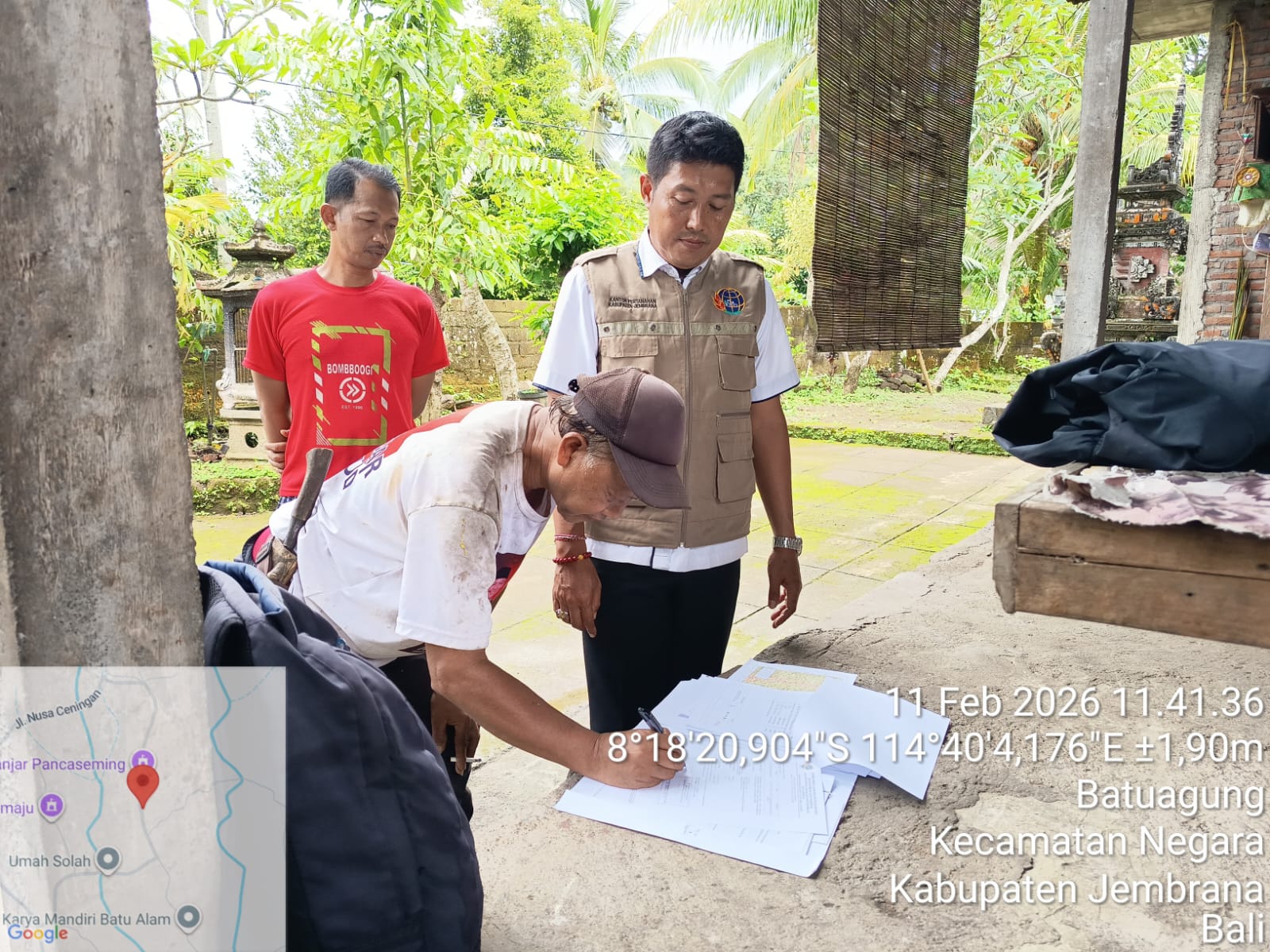 Jembrana, Porosinformatif| Petugas dari Kantor Pertanahan Kabupaten Jembrana melaksanakan peninjauan lokasi dalam rangka proses pertimbangan teknis (Pertek) di Banjar Pancaseming, Desa Batuagung. Kegiatan ini merupakan bagian dari tahapan administrasi sekaligus verifikasi lapangan guna memastikan kesesuaian antara data fisik dan data yuridis dengan kondisi sebenarnya di lokasi.