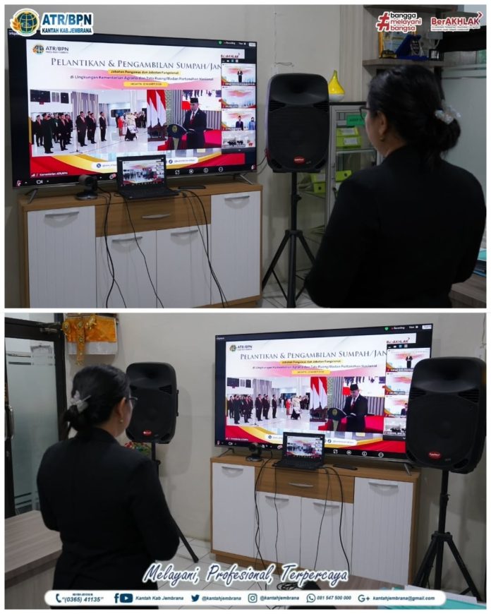 Jembrana, Porosinformatif| Kantor Pertanahan Kabupaten Jembrana melaksanakan kegiatan pelantikan dan pengambilan sumpah jabatan bagi pejabat yang baru, dalam suasana khidmat dan penuh makna. Kegiatan ini merupakan bagian dari upaya penyegaran organisasi serta peningkatan kinerja pelayanan publik di bidang pertanahan.