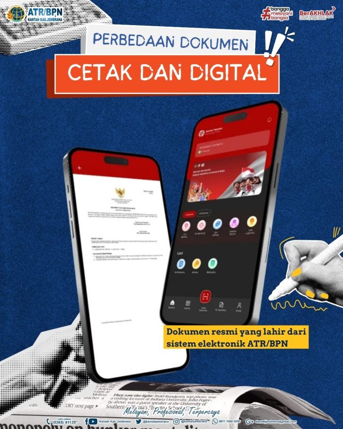 Jembrana, Porosinformatif| Kantor ATR/BPN Kabupaten Jembrana memberikan edukasi kepada masyarakat terkait perbedaan dokumen cetak dan digital dalam layanan pertanahan guna meningkatkan pemahaman di era transformasi digital.
